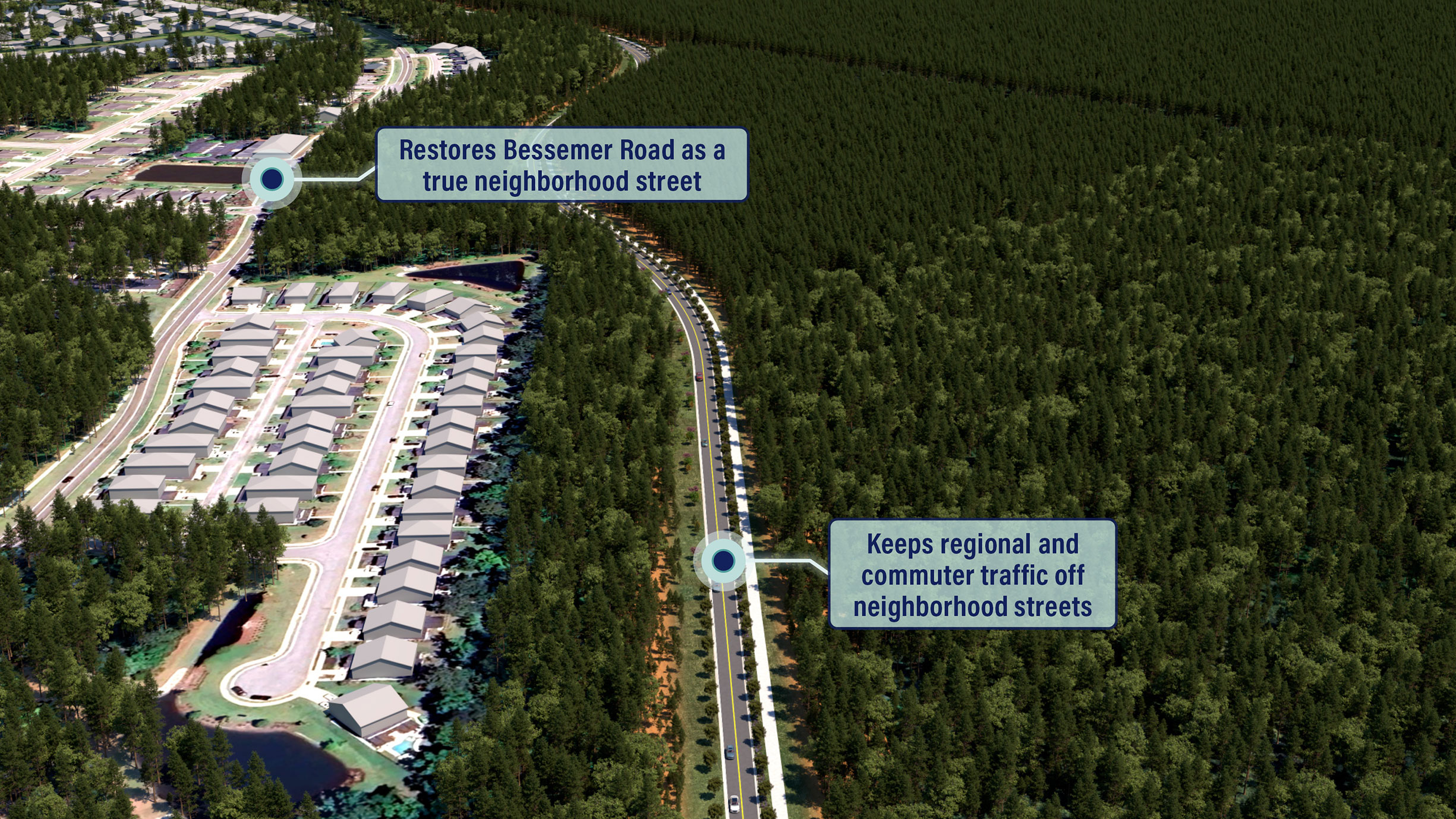 - The Parkway will reduce the number of cars on Bessemer Road by 90%, helping restore it to a quiet and safe neighborhood street