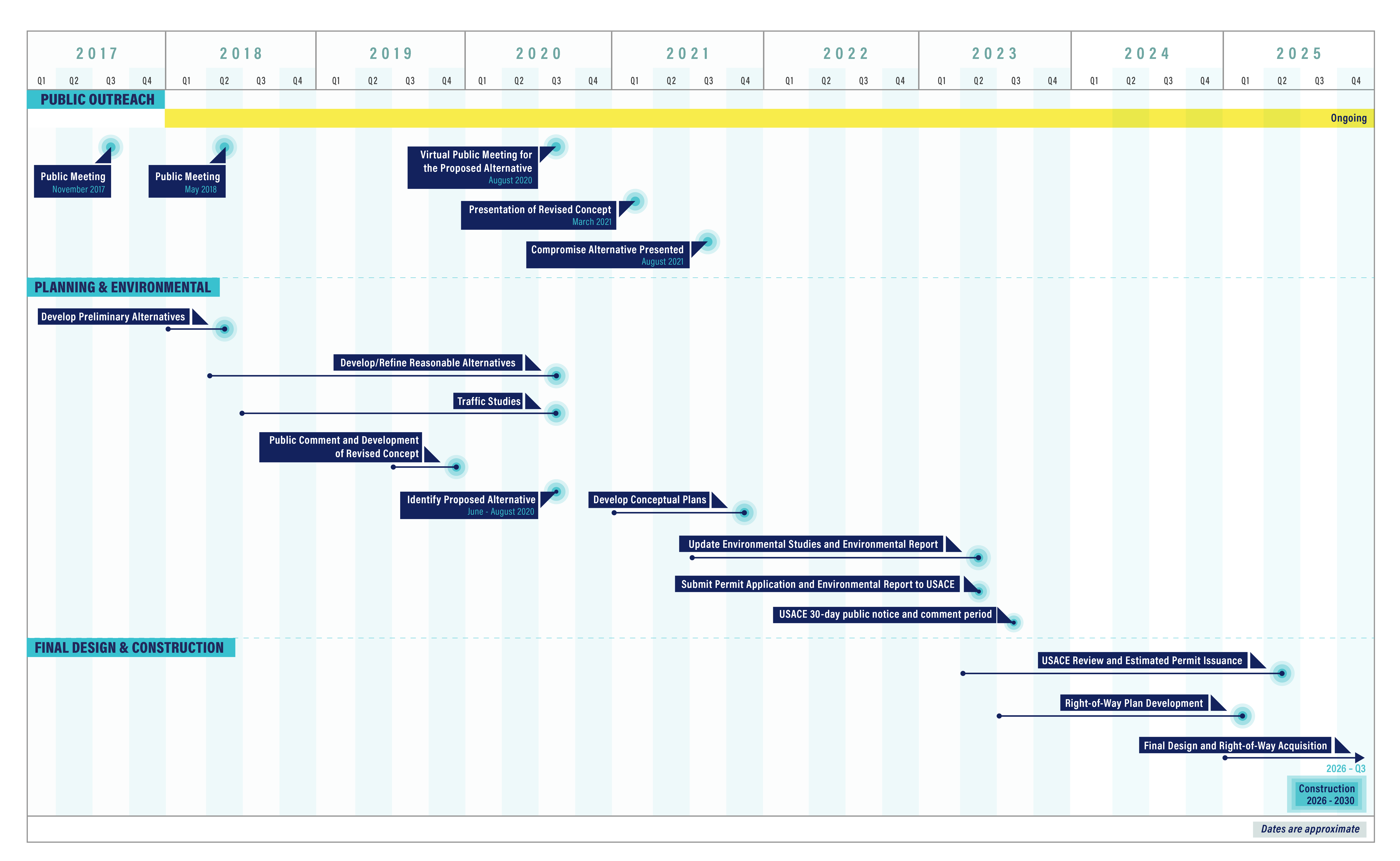 Charleston County has followed an extensive environmental review process, which has included public and stakeholder engagement as well as a detailed alternatives evaluation process to examine the environmental, social, cultural, and economic impacts of the project.